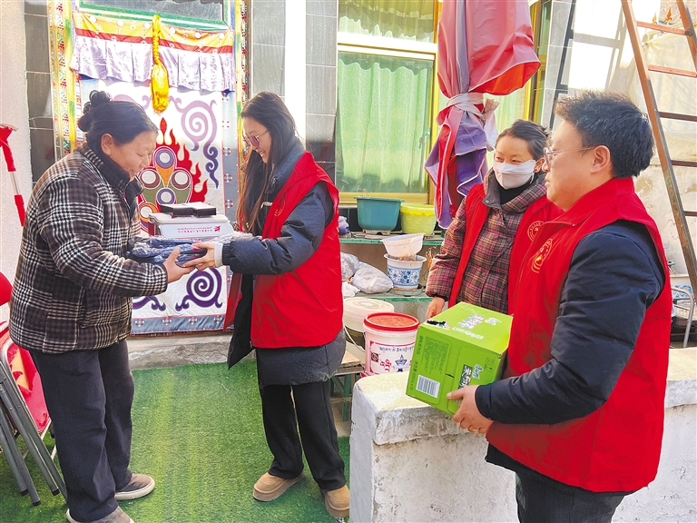 連日來(lái),拉薩市城關(guān)區(qū)納金街道新時(shí)代文明實(shí)踐所志愿者們向孤寡老人發(fā)放慰問(wèn)品及法律宣傳手冊(cè),為老人提供幫助、送去關(guān)懷。