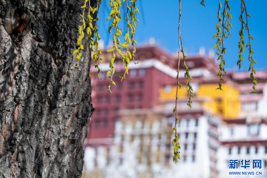 3月15日,吐露新芽的柳枝掩映著布達拉宮。新華網(wǎng) 旦增努布 攝