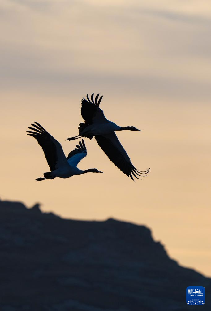 黑頸鶴是國家一級保護動物,主要棲息在海拔2500米至5000米的高原、草甸、沼澤地帶。每年10月下旬左右,大批黑頸鶴來到西藏林周縣越冬,次年3月底、4月初飛往繁殖地。據(jù)了解,每年來林周縣越冬的黑頸鶴種群數(shù)量,從2005年的1200多只增長到2023年的2500多只。