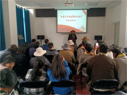 活動從上午11時開始,村民們聚集在村委會的旗桿下,唱著雄壯的義勇軍進行曲,冉冉升起鮮艷的五星紅旗。隨后駐村工作隊為大家播放了民主改革紀錄片《跨越》《朗生互助組》。播放結(jié)束后,村里的3名老黨員先后以親身經(jīng)歷講述新舊西藏的深刻變化,教育大家一定要珍惜今天的幸福生活,聽黨話、感黨恩、跟黨走。嘎瑪頓旦今年74歲,是一名老黨員,他身著節(jié)日盛裝,佩戴“光榮在黨50年”紀念章,自信地向群眾講述,“舊西藏,強白村要給政府上很重的稅,有7戶人家每年還上要交牦牛,日子過得甭提有多苦、多難?,F(xiàn)在政府不收一分錢,每年給大家發(fā)那么多的政策補助,路修通了,房子修得漂亮了,吃的穿的都好,我們都是親眼所見的,所以,沒有理由不感謝共產(chǎn)黨?!?/p>