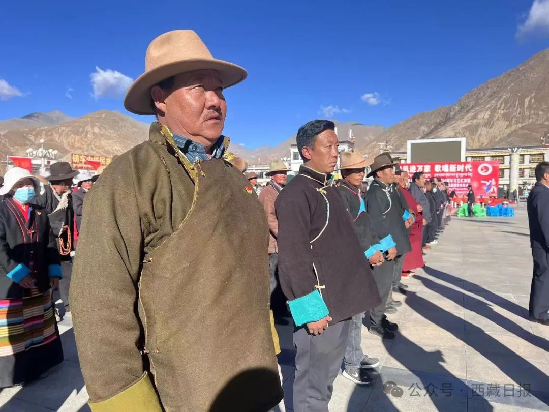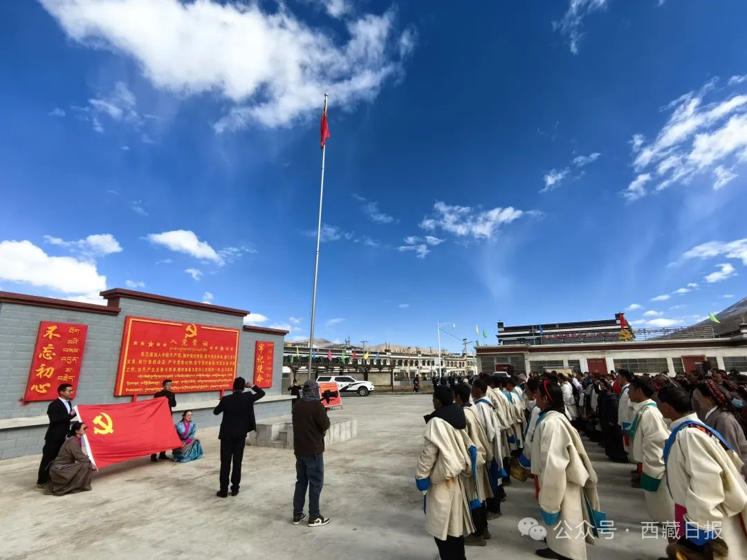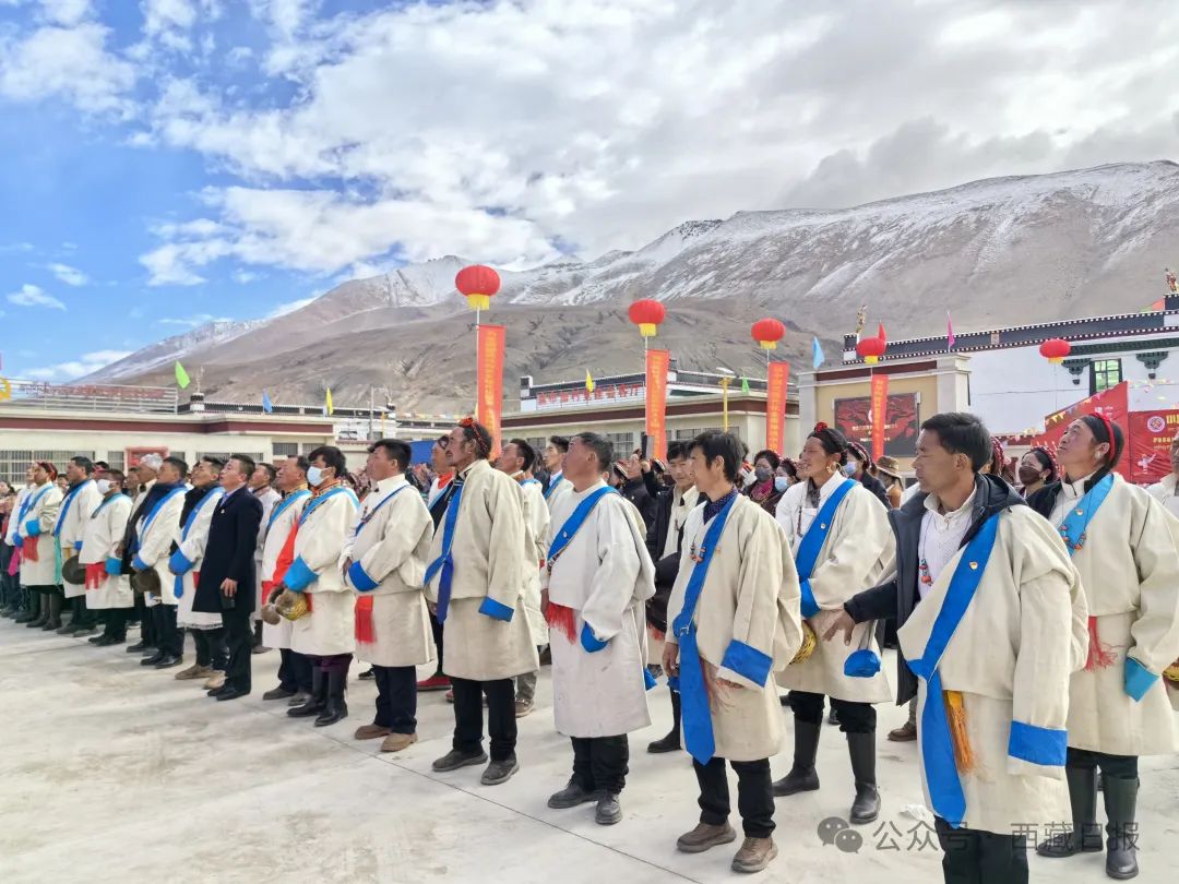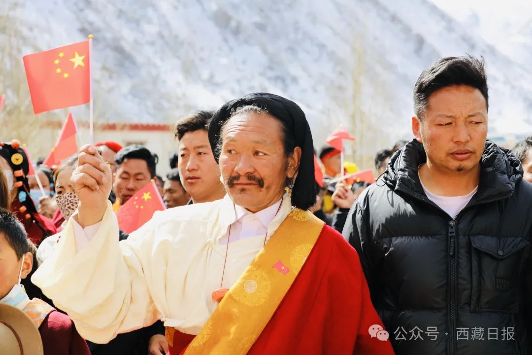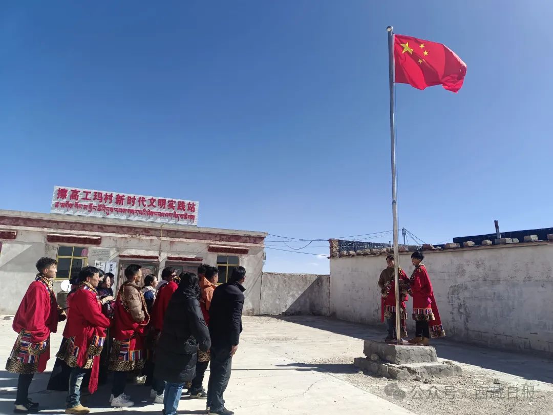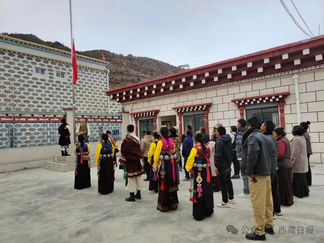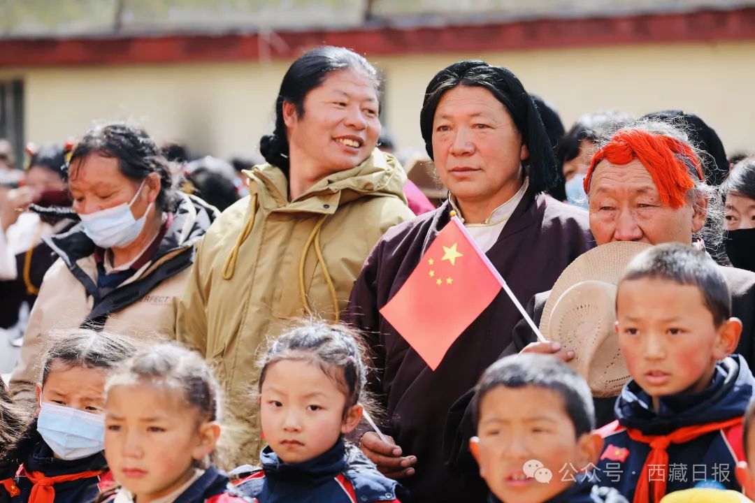 日喀則市薩迦縣麻布加鄉(xiāng)舉行“叫我們怎么不歌唱”紀念西藏民主改革65周年升國旗唱國歌儀式。