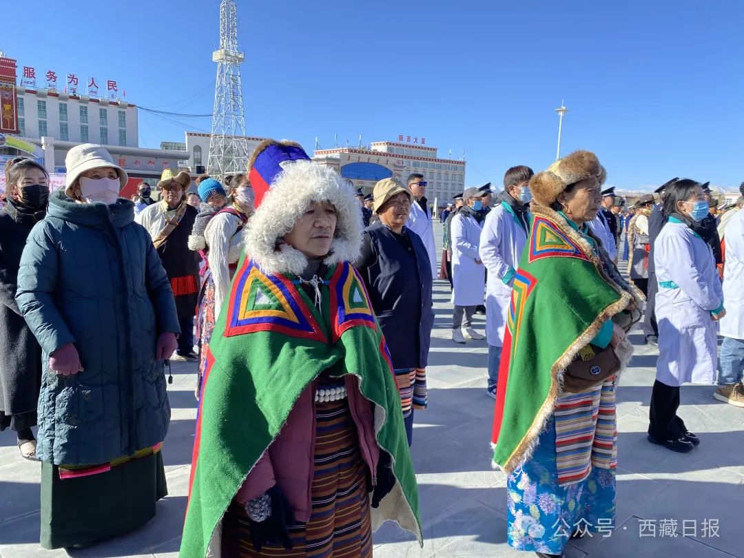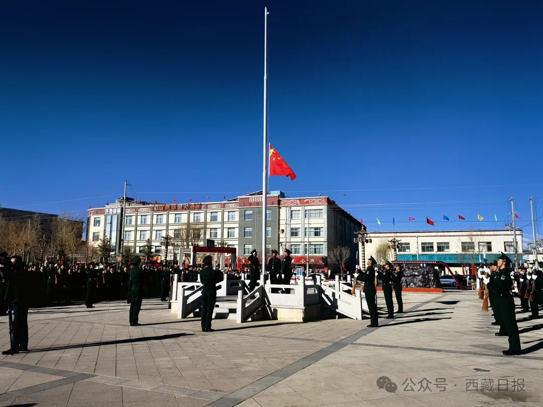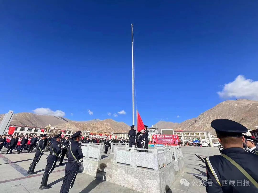 日喀則市南木林縣各族干部群眾1500余人聚集在民族團結廣場舉行紀念西藏百萬農奴解放65周年升國旗唱國歌儀式。