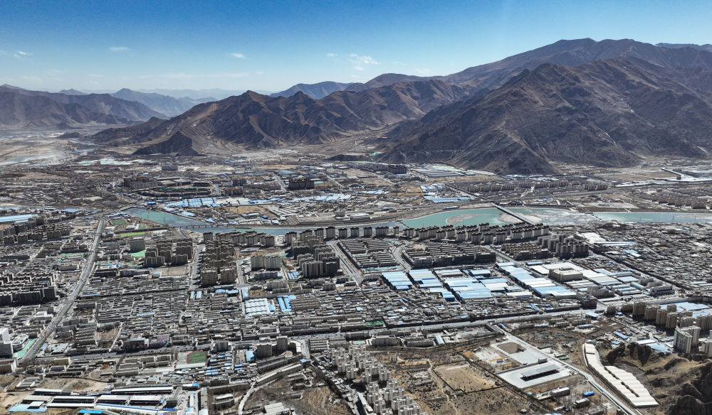 拉薩市堆龍德慶區(qū)嘎東社區(qū)(2024年3月14日攝,無人機照片)。新華社記者 晉美多吉 攝