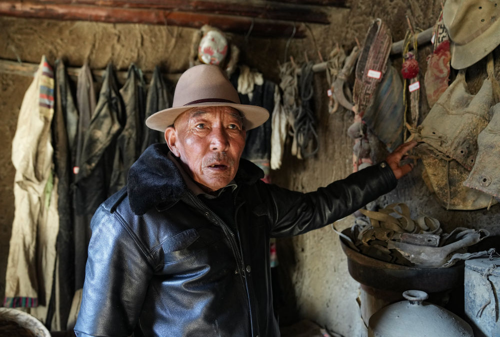雖然背有點駝,聽力也差,79歲的朗杰老人仍堅持戴著禮帽,衣著得體,精神矍鑠。講起從前的事情,老人思路很清晰,表達也有力。