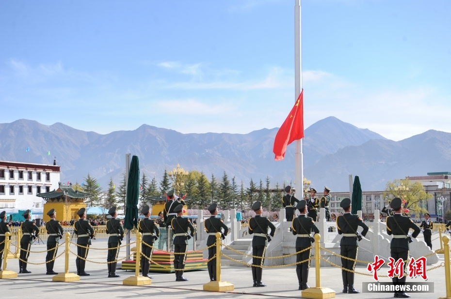 3月28日,西藏各族各界人士聚集在拉薩布達(dá)拉宮廣場,升國旗、唱國歌,參加西藏百萬農(nóng)奴解放65周年紀(jì)念活動。圖為升國旗儀式現(xiàn)場。中新社記者 貢嘎來松 攝