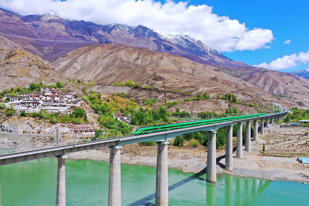 “復興號”列車奔馳在雪域高原(2022年4月14日攝)。新華社記者 覺果 攝