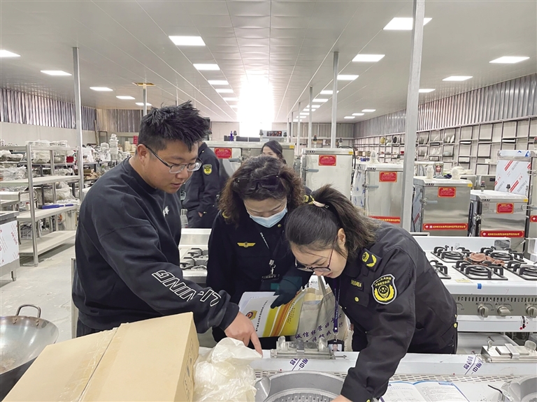 為進一步加強重點工業(yè)產(chǎn)品批發(fā)企業(yè)監(jiān)管工作,執(zhí)法人員通過現(xiàn)場檢查核對經(jīng)營主體資質(zhì)、經(jīng)營產(chǎn)品合格證、產(chǎn)品基本信息、CCC強制性產(chǎn)品認證標志、灶具熄火保護裝置、燃氣導管結構、銘牌、產(chǎn)品外包裝標志等內(nèi)容,要求經(jīng)營主體進一步落實進貨查驗制度,當好“第一檢驗員”。
