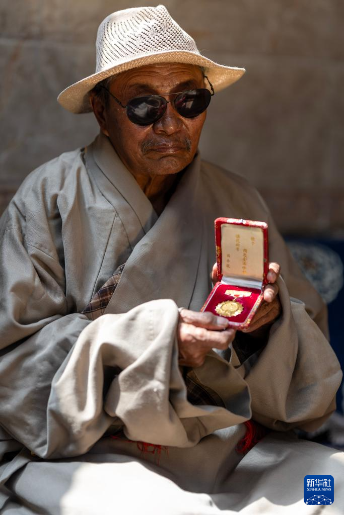 白瑪老人展示自己的全國勞動(dòng)模范獎(jiǎng)?wù)拢?月27日攝)。新華社記者 姜帆 攝