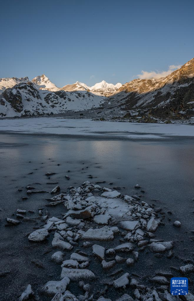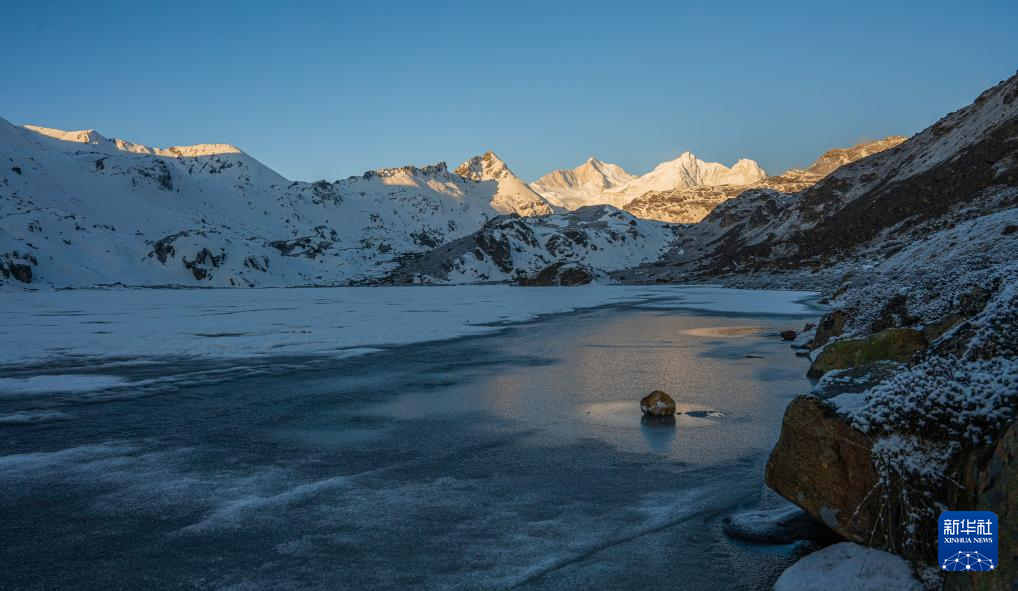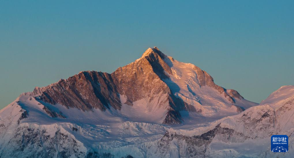 這是在嘎瑪溝拍攝的“日照金山”景象(4月17日攝)。新華社記者 丁增尼達 攝