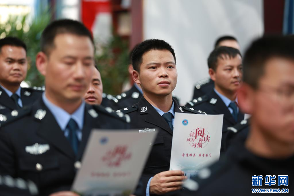 在“古道雄關(guān) 書香國門”主題讀書分享會(huì)上分享者黃耀軍正在向全站移民管理警察分享讀書心得(4月19日攝)。肖富貴 攝