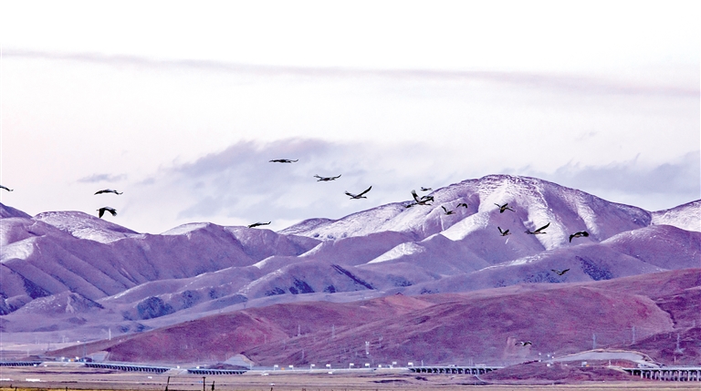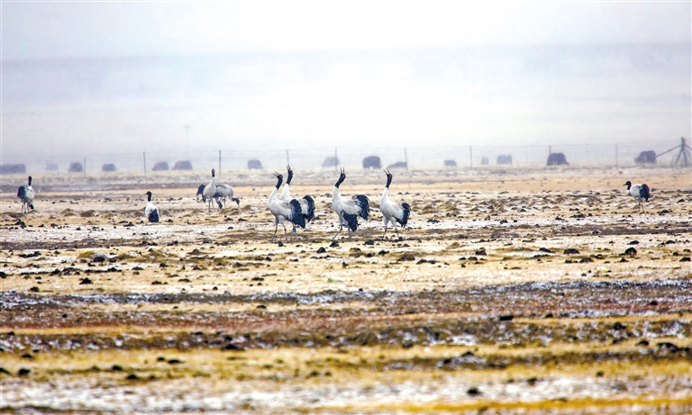 “天路”旁的黑頸鶴。索朗多杰 攝