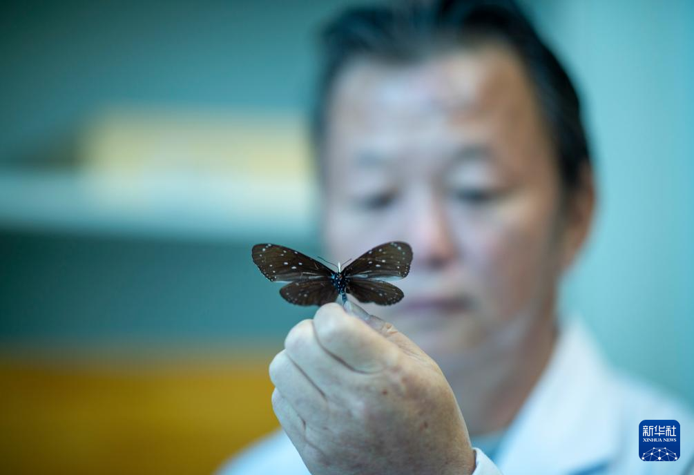 達娃在位于拉薩的西藏自治區(qū)高原生物研究所識別蝴蝶樣品特征(4月22日攝)。新華社記者 旦增尼瑪曲珠 攝