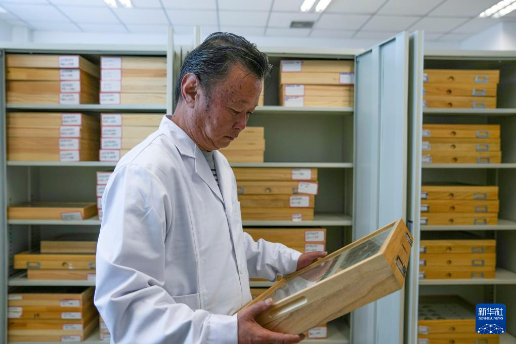 達娃在位于拉薩的西藏自治區(qū)高原生物研究所檢視昆蟲標(biāo)本(4月22日攝)。新華社記者 晉美多吉 攝