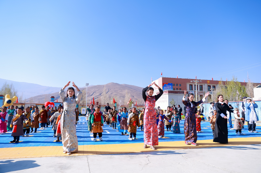 西藏日喀則卡堆鄉(xiāng)幼兒園美團鄉(xiāng)村兒童操場落成儀式西藏鍋莊舞表演