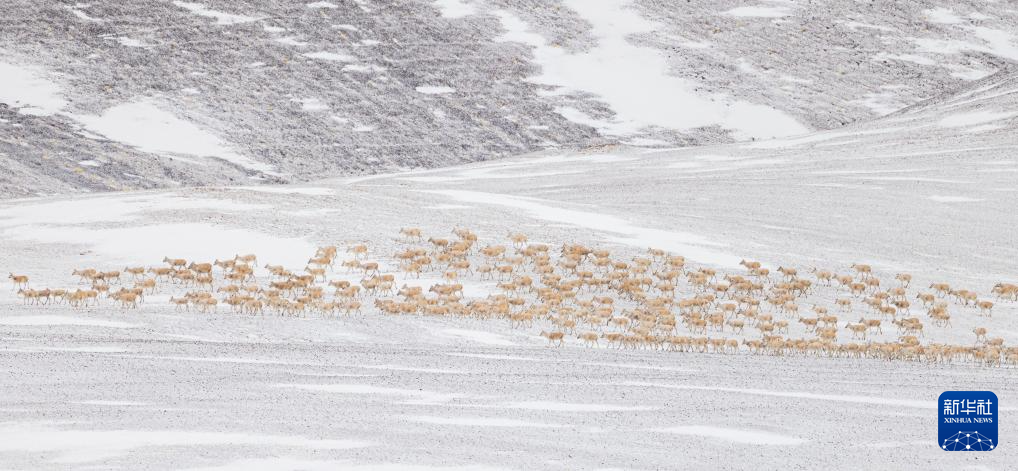 藏羚羊向產(chǎn)羔地遷徙(5月12日攝)。新華社記者 姜帆 攝
