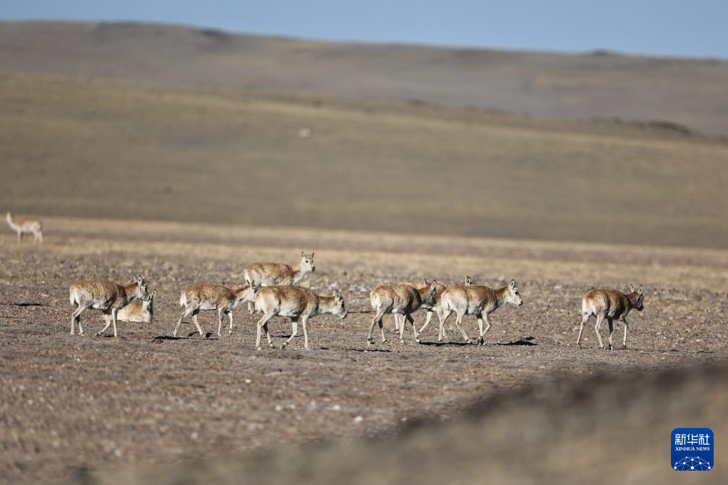 藏羚羊向產(chǎn)羔地遷徙(5月10日攝)。新華社記者 丁增尼達(dá) 攝