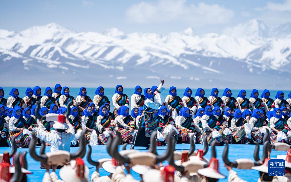 舞蹈演員在納木錯開湖活動現(xiàn)場表演(5月19日攝)。新華社記者 丁增尼達 攝