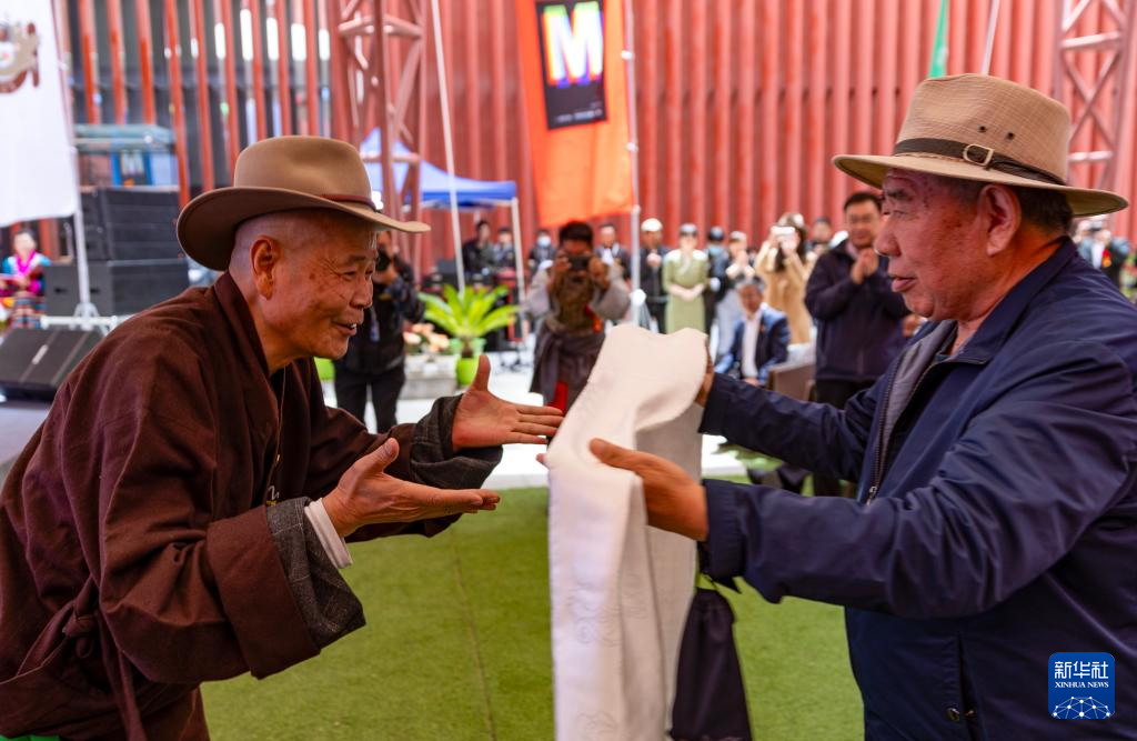 5月18日,友人為吳雨初(左)獻(xiàn)上哈達(dá)。新華社記者 姜帆 攝