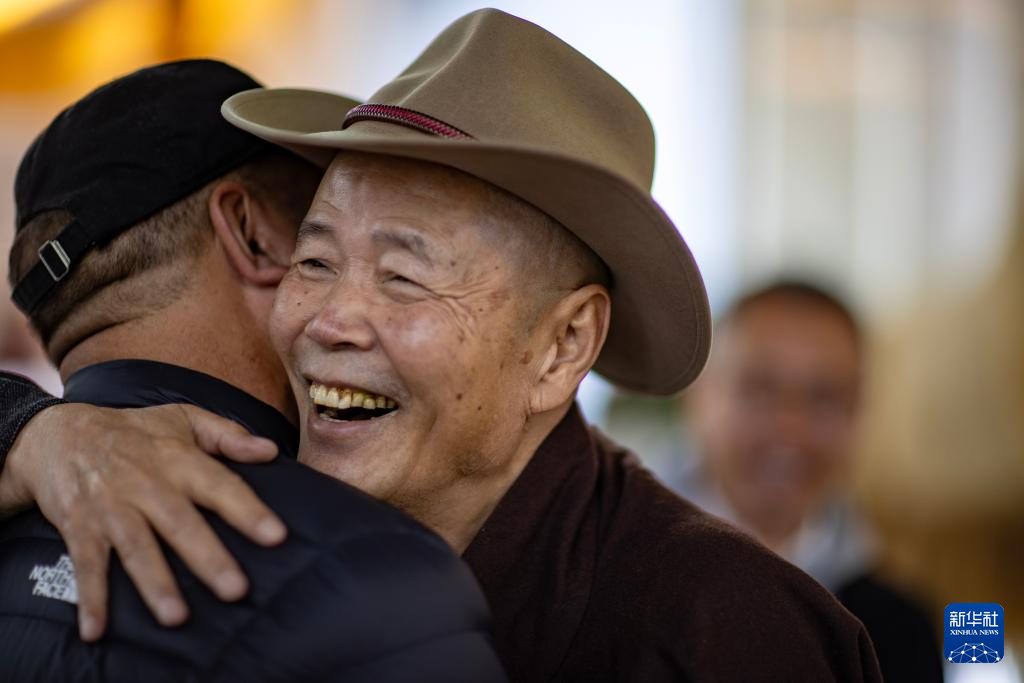 5月18日,吳雨初在西藏牦牛博物館與友人擁抱。新華社記者 姜帆 攝