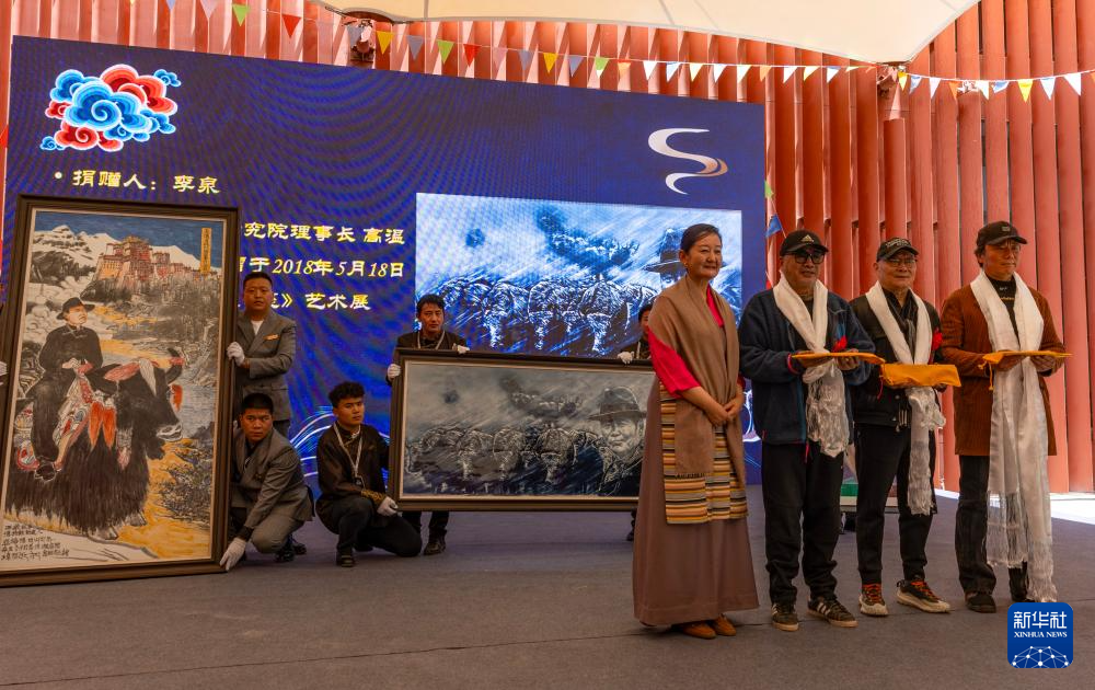 5月18日,吳雨初的友人為西藏牦牛博物館捐贈(zèng)瓷畫(huà)《“亞格博”在西藏》。新華社記者 姜帆 攝