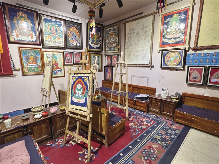 唐卡非遺文創(chuàng)體驗(yàn)館中的唐卡畫室。