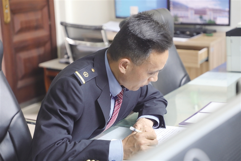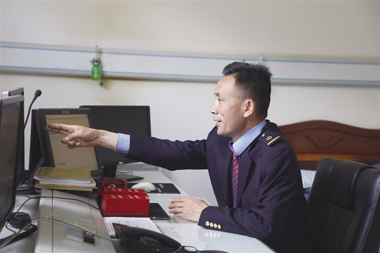 “這里的工作雖然看似單調(diào),實(shí)則責(zé)任很大。”賀文貴身穿深藍(lán)色的鐵路制服,胸前佩戴著亮閃閃的工牌,顯得精神抖擻。他像一名嚴(yán)謹(jǐn)?shù)膽?zhàn)士,緊盯著操作臺,確認(rèn)信號,口呼手指。 作為車站值班員,賀文貴每天的任務(wù)主要是監(jiān)視列車進(jìn)路和區(qū)間動(dòng)態(tài),保證行車安全。工作中的他認(rèn)真負(fù)責(zé),嚴(yán)格執(zhí)行標(biāo)準(zhǔn)化作業(yè),他常說:即使單人值守,該有的程序、作業(yè)步驟一項(xiàng)都不少,作業(yè)標(biāo)準(zhǔn)必須嚴(yán)格執(zhí)行,保證作業(yè)安全。