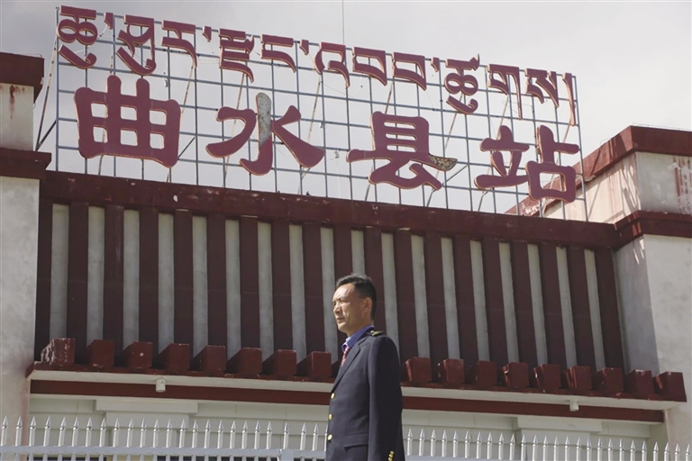 每天,清晨的第一縷陽光還未穿透遠(yuǎn)方的山巒時(shí),車站值班員賀文貴已經(jīng)站在曲水站的站臺上,開始了他日復(fù)一日的工作,查看股道是否有異物,是否有動(dòng)物進(jìn)入站場。曲水站與其他站不一樣,根據(jù)工作安排,平時(shí)這里只有一個(gè)人當(dāng)班應(yīng)急值守,沒有旅客上下站,時(shí)而駛過的火車,是這里唯一的來客。目之所及,只有遠(yuǎn)處的雪山、農(nóng)田和滾滾向前的雅魯藏布江水。