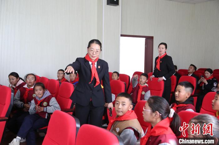 圖為瓊結縣人民法院院長解松娟正在為學生們講解庭審過程。倫珠澤仁攝