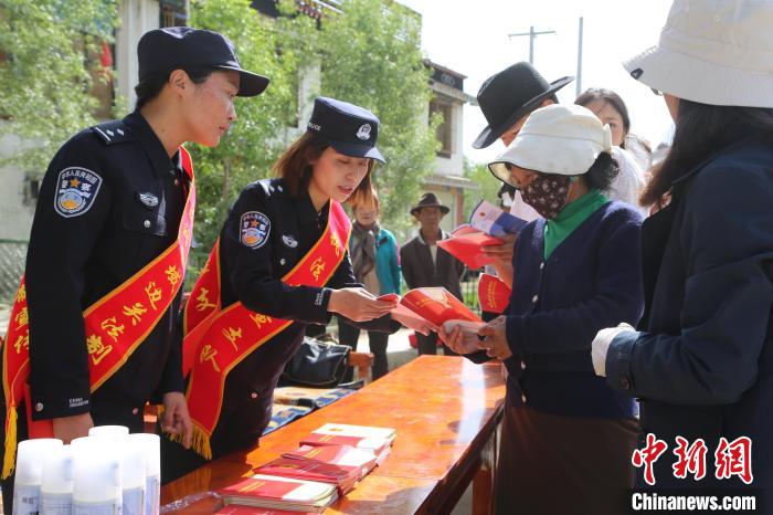 圖為西藏邊檢總站執(zhí)法調(diào)查支隊(duì)民警向民眾普及《民法典》知識(shí)。徐錫萬 攝