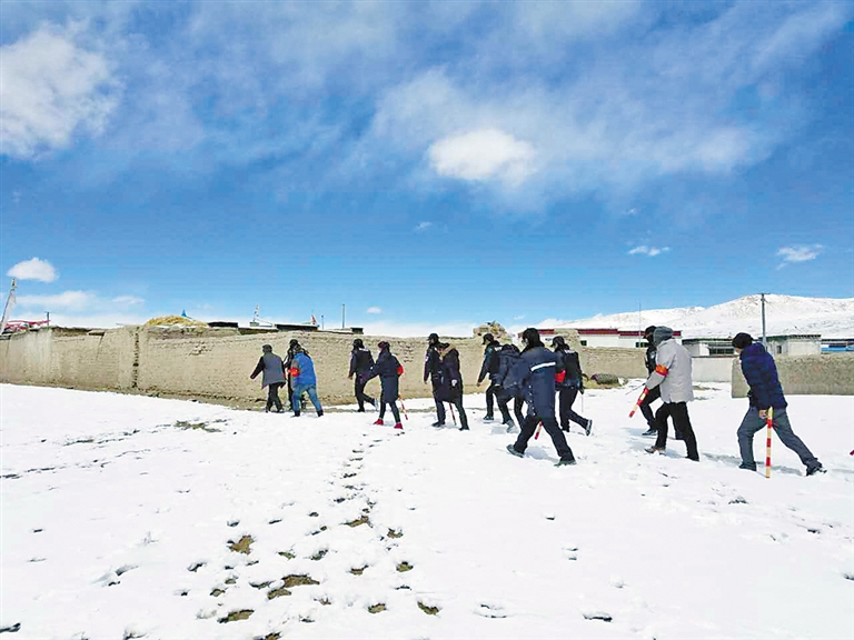 中國電信西藏公司駐霍爾巴鄉(xiāng)駐村工作隊(duì)與當(dāng)?shù)嘏沙鏊谪暽4逯車_展巡邏。
