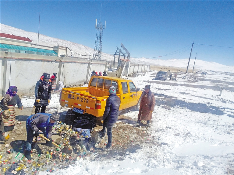 2017年3月,中國電信西藏公司駐霍爾巴鄉(xiāng)貢桑村工作隊(duì)組織群眾在219國道沿線清理垃圾。