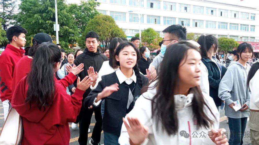 圖為林芝市第二高級(jí)中學(xué)考生自信滿滿進(jìn)場(chǎng)。記者 劉楓 攝