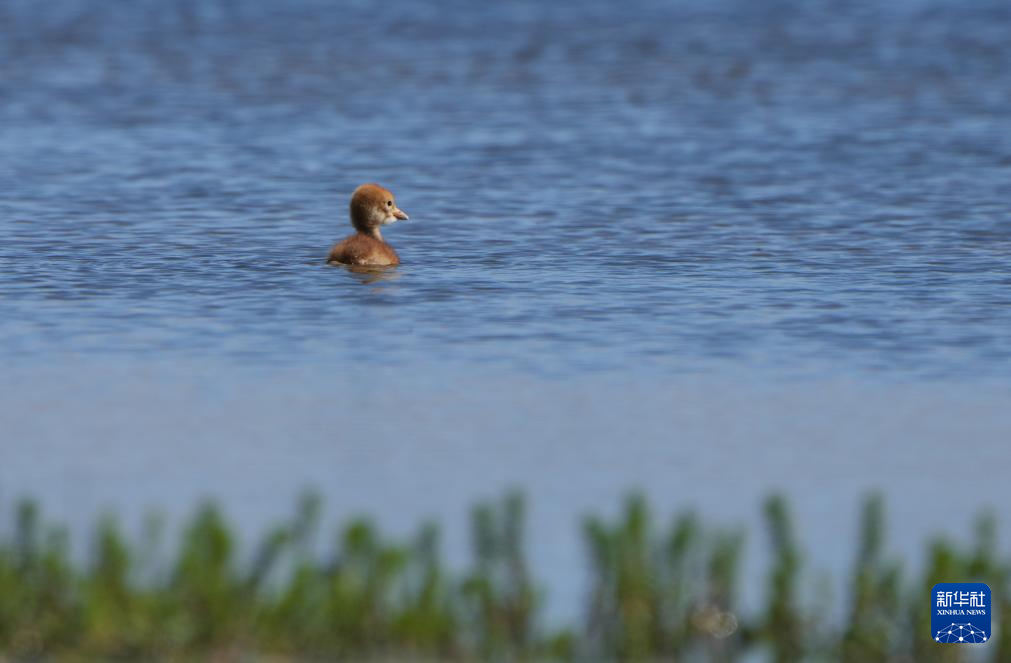 這是6月9日在西藏那曲市申扎縣一處濕地拍攝的黑頸鶴雛鳥。新華社記者 晉美多吉 攝