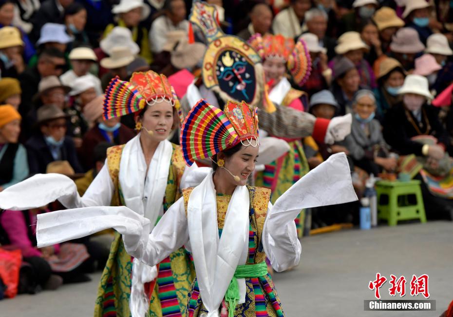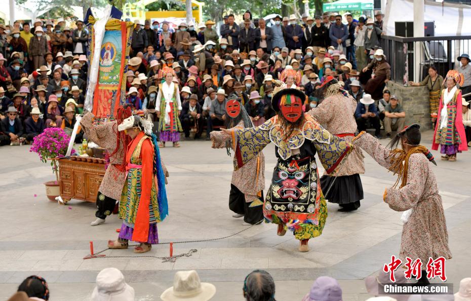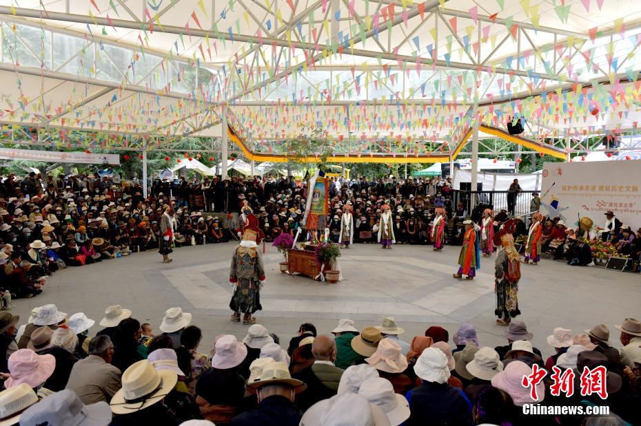 6月12日,藏戲藝人在拉薩市宗角祿康公園表演。從6月9日起,拉薩2024年“藏戲演出季”啟幕。布達拉宮腳下的宗角祿康公園,5支民間藏戲團隊表演的傳統(tǒng)藏戲劇目,吸引當地民眾和游客前來觀看。李林 攝