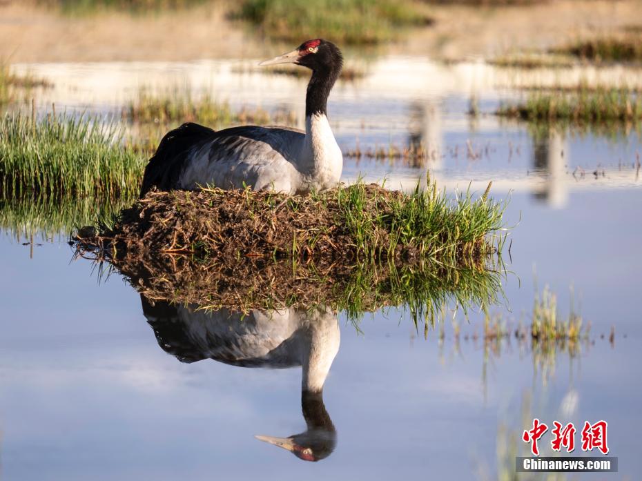 6月12日,西藏那曲市申扎縣濕地里一只黑頸鶴在孵蛋。申扎縣,平均海拔超過4500米,是黑頸鶴在中國的主要繁殖地之一。每年4月到6月,成群的黑頸鶴會(huì)來到這里,筑巢、孵化、養(yǎng)育下一代。近年來,為了保護(hù)這些珍貴的生靈,申扎縣采取了一系列措施,設(shè)立了監(jiān)測(cè)站,對(duì)黑頸鶴的棲息地進(jìn)行24小時(shí)監(jiān)控,確保它們的繁殖不受干擾。黑頸鶴是國家一級(jí)保護(hù)動(dòng)物,也是世界上唯一一種生長、繁殖在高原的鶴類。扎西平措 攝