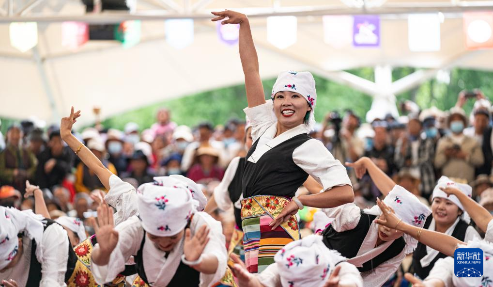 6月14日拍攝的第二屆拉薩鍋莊舞大賽現(xiàn)場(chǎng)。新華社記者 丁增尼達(dá) 攝