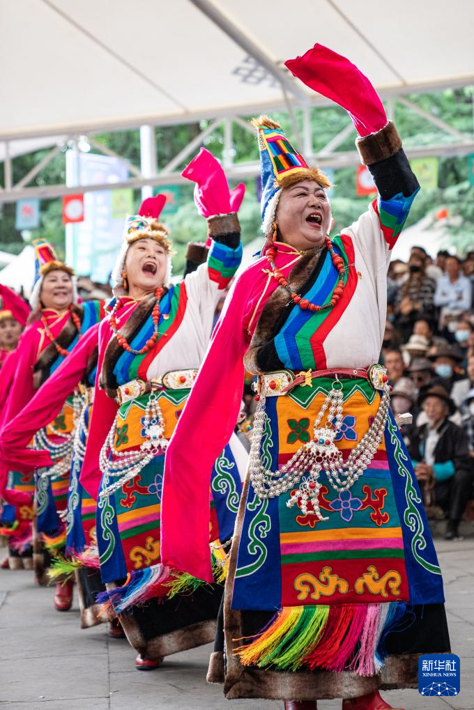 6月14日,參賽者在第二屆拉薩鍋莊舞大賽現(xiàn)場(chǎng)表演。新華社記者 丁增尼達(dá) 攝