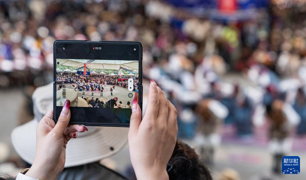 當(dāng)日,第二屆拉薩鍋莊舞大賽(決賽)在布達(dá)拉宮腳下的宗角祿康公園舉辦。經(jīng)過激烈角逐脫穎而出的12支隊(duì)伍為市民和游客奉獻(xiàn)了一場(chǎng)歡快的視聽盛宴。新華社記者 黃智琪 攝
