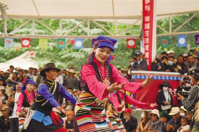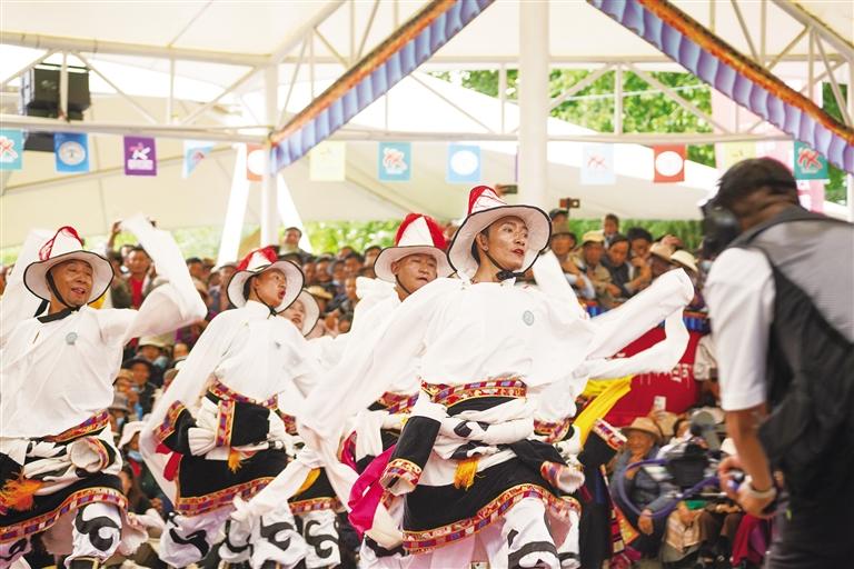 從傳統(tǒng)民族舞到現(xiàn)代創(chuàng)新舞,每支舞蹈都蘊含著藏族人民對家鄉(xiāng)的熱愛和對美好生活的向往。比賽中,參賽人員身著特色民族服飾,伴隨著優(yōu)美激昂的旋律,踩著歡快的節(jié)拍,以飽滿的熱情和精湛的舞技,演繹了一場精彩而富有特色地域文化的廣場舞盛宴,凸顯了非物質文化遺產(chǎn)的傳承創(chuàng)新發(fā)展。