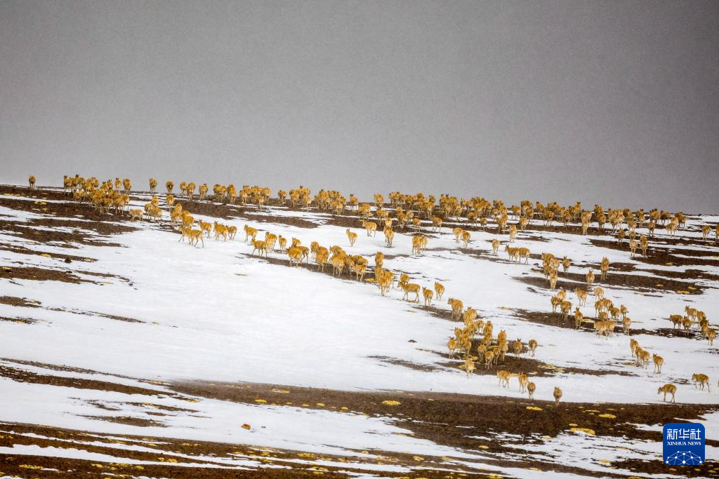 這是雪地中遷徙的藏羚羊(5月8日攝)。新華社記者 丁增尼達 攝