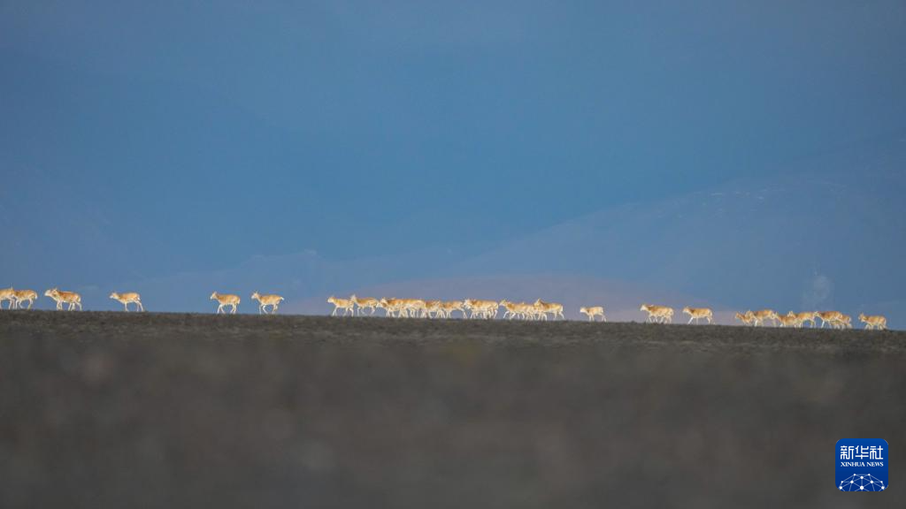 6月13日傍晚在羌塘國家級自然保護區(qū)拍攝的遷徙中的藏羚羊。新華社記者 費茂華 攝