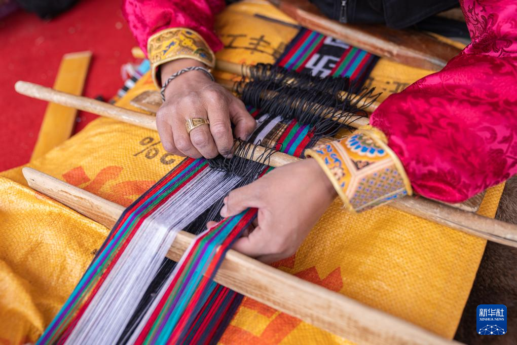 在那曲市雙湖縣,農(nóng)牧民選手邊曲在參加手工編織技藝比賽(6月20日攝)。新華社記者 丁增尼達(dá) 攝
