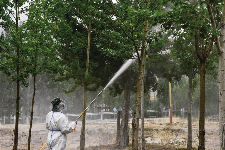 楊樹是拉薩主要的造林樹種,其種植面積大、覆蓋范圍廣,無論是在城市的市政綠化還是在郊區(qū)的鄉(xiāng)村小道,都不難發(fā)現(xiàn)它的身影。但是,楊樹也極易引發(fā)病害。近日,拉薩市堆龍德慶區(qū)林業(yè)和草原局聯(lián)合相關(guān)園林科技公司開展林業(yè)病蟲害巡查工作,并對(duì)其中一片出現(xiàn)病害的楊樹林進(jìn)行了防治,有效阻斷了病害的蔓延,用實(shí)際行動(dòng)守護(hù)了拉薩的綠水青山?!?/p>