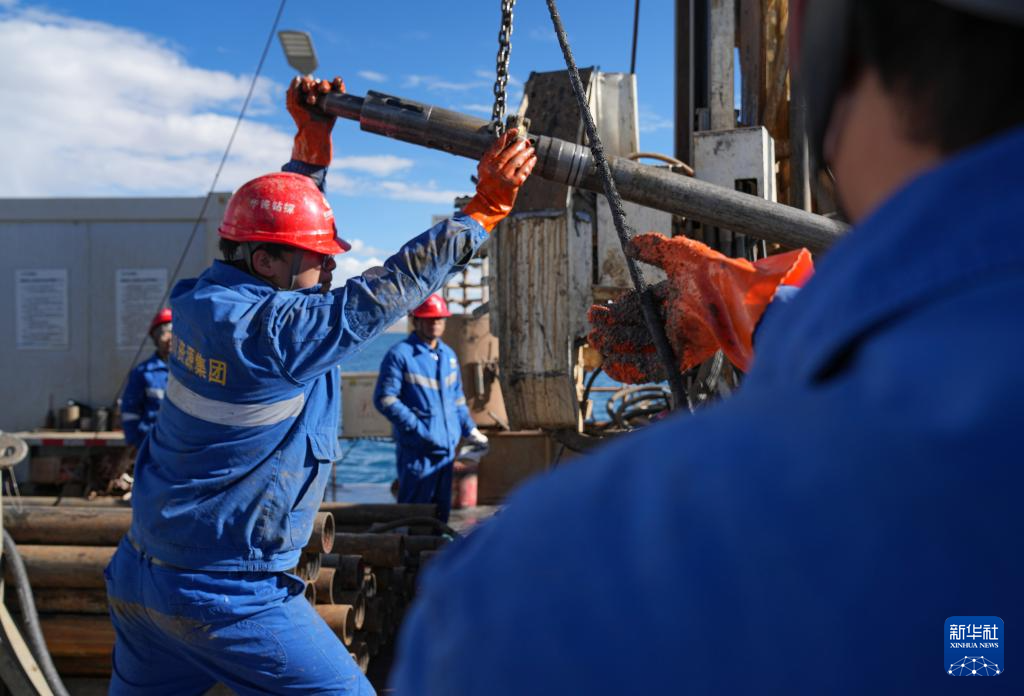 7月11日,鉆探人員提起內(nèi)管,準備提取湖泊巖芯。新華社記者 晉美多吉 攝