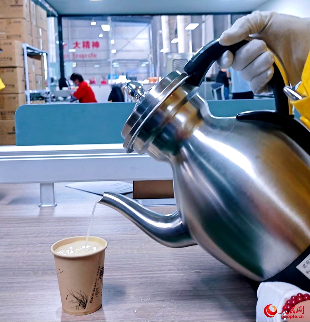 走進(jìn)生產(chǎn)車間旁的質(zhì)檢間,工作人員正在測(cè)試新上市的酥油茶壺?!斑@是新品,60秒就能做好一杯酥油茶,省時(shí)省力?!?/p>