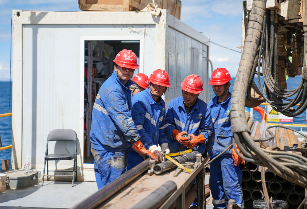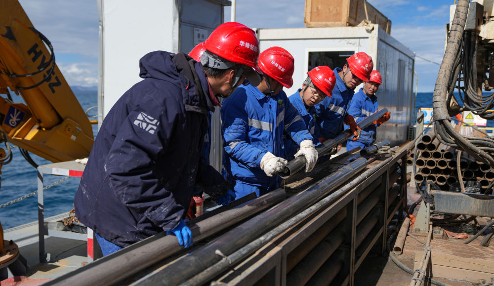 在海拔超過4700米的西藏納木錯中心湖區(qū),21名來自五湖四海的鉆探專業(yè)技術(shù)人員,全天24小時輪班奮戰(zhàn)在面積僅200平方米的水上鉆探平臺上,協(xié)助第二次青藏科考科研人員提取湖泊巖芯樣品,這些樣本如同寶貝一樣,封存著青藏高原納木錯地區(qū)百萬年來的環(huán)境氣候變化信息。 擔(dān)任這次湖泊巖芯鉆探任務(wù)的是四川資源集團(tuán)華鋒鉆探隊。他們從5月31日入駐科考營地、6月6日鉆取第一批湖泊巖芯樣品以來一直奮戰(zhàn)至今。這群平均年齡31歲的鉆探隊員常年工作在高海拔地區(qū),有著豐富的鉆探經(jīng)驗,此次鉆探是他們第一次進(jìn)行高海拔湖泊鉆探。目前納木錯鉆探深度突破400米,達(dá)到國內(nèi)高海拔深水大湖的鉆探新紀(jì)錄。這些鉆探隊員在見證奇跡,也在創(chuàng)造歷史。