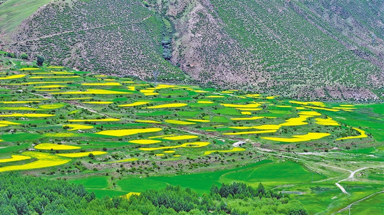 最近,墨竹工卡縣迎來(lái)了油菜花的盛開(kāi)時(shí)節(jié)。放眼望去,滿(mǎn)目的油菜花如同金黃色的毯子般鋪展開(kāi)來(lái),在微風(fēng)中搖曳,散發(fā)出迷人的香氣。一團(tuán)團(tuán)、一簇簇的金黃色花朵點(diǎn)綴在田野上,流動(dòng)著濃濃夏意。成片的花海與蜿蜒的農(nóng)村公路、錯(cuò)落有致的村居共同構(gòu)成了一幅和諧美麗的田園風(fēng)景圖。