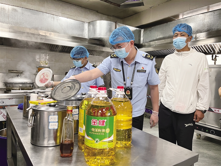 市場監(jiān)管部門工作人員開展校園食品安全檢查。