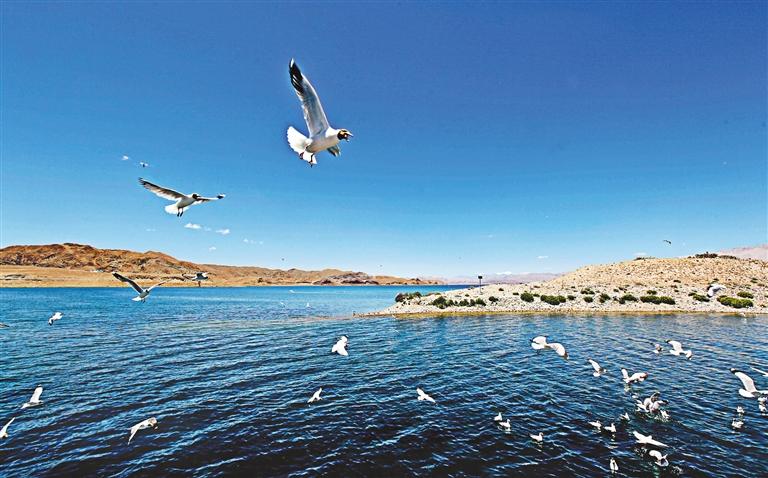 “現(xiàn)在的拉薩河更像一個(gè)湖,湖寬水深、濤聲陣陣,金色的陽(yáng)光灑滿湖面,一陣風(fēng)吹來(lái),掀起了不少漣漪。成群結(jié)隊(duì)的候鳥(niǎo)在湖面自由自在地翱翔、嬉戲,讓人心曠神怡?!卑頃r(shí)分,家住頓珠金融城的拉薩市民平措在拉薩河三號(hào)閘上悠閑散步、感慨地說(shuō)道。