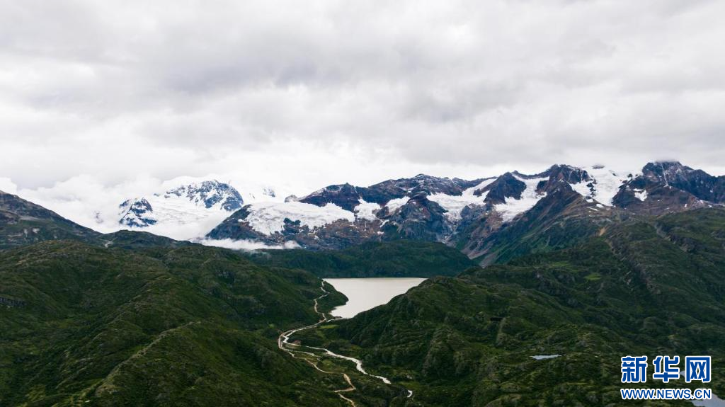 圖為8月18日拍攝的八宿縣境內(nèi)冰川融雪的自然景觀(無(wú)人機(jī)照片)。 新華網(wǎng)發(fā) 彭瑋希攝
